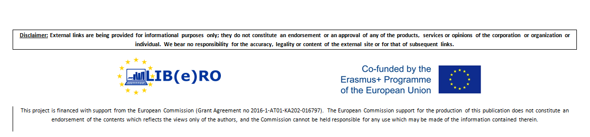 This is a test version of the learning module "Working with LIB(e)RO" in the frame of the eLearning platform LIB(e)RO. You can find further information on the project website.