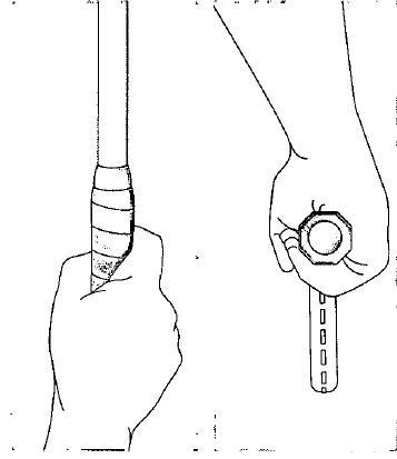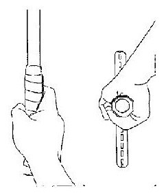 Beim Aufschlag wird ein Mittelgriff (Semikontinentalgriff) bzw. ein leichter Rückhandgriff verwendet (Scholl, 2009, S.73).