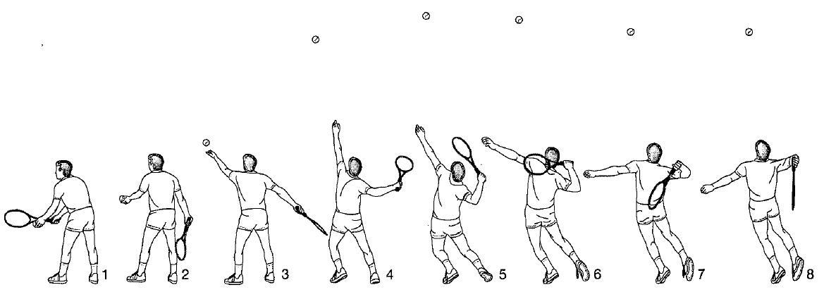 Da der Aufschlag eine sehr komplexe Bewegung ist, soll zunächst eine Bildreihe angefügt werden, damit man eine bessere Vorstellung der Aufschlagbewegung bekommt. Die Aufschlagbewegung kann in drei Phasen unterteilt werden: Die Ausholphase (Bild 1-5), die Schlagphase (Bild 6-11) und die Ausschwungphase (Bild 12-16). Die einzelnen Phasen sollen nun genauer beschrieben werden.