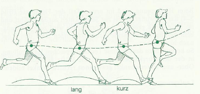 Der Anlauf strukturiert sich also in einen Beschleunigungsabschnitt und in eine Absprungvorbereitung, deren Ziel in einer optimalen Umsetzung der horizontalen Anlaufgeschwindigkeit in eine vertikale Abfluggeschwindigkeit liegt. (Bauersfeld & Schröter, 1998, S. 227)